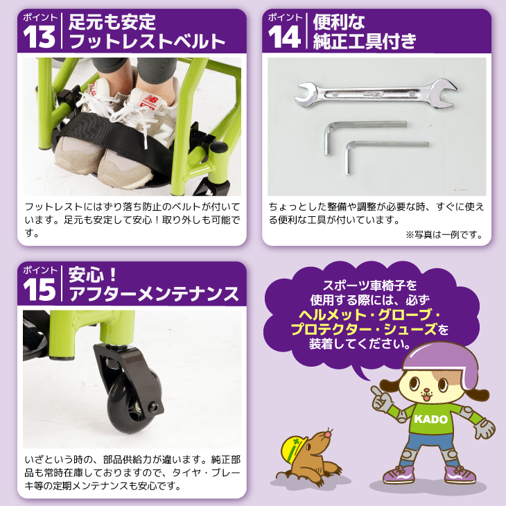 ■転倒防止バーを標準装備し、スポーツ車椅子初心者でも安心
