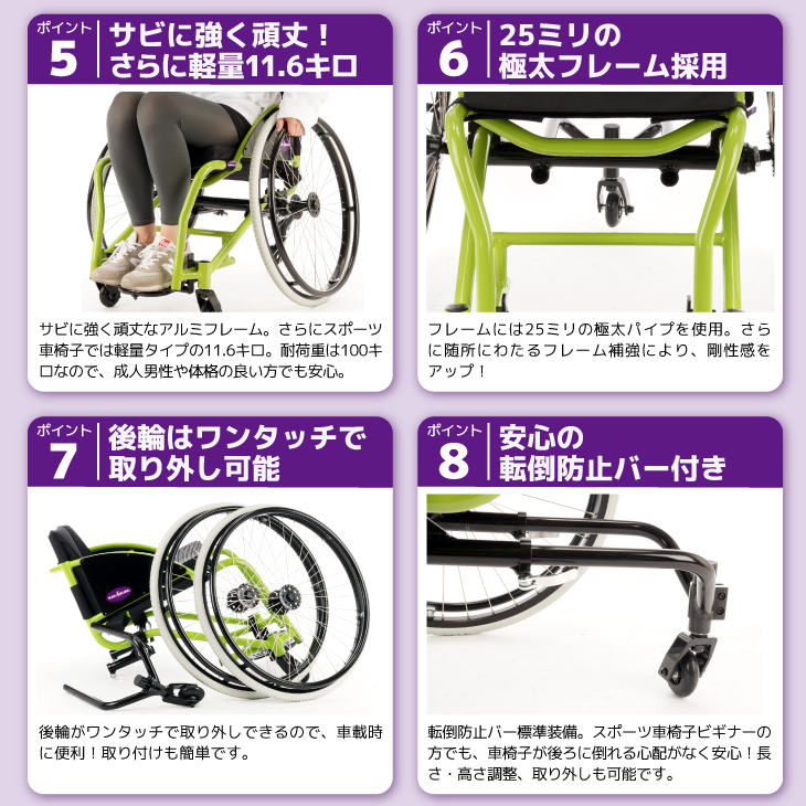 ■11.6kg を実現した、軽量で扱いやすい丈夫なスポーツ車椅子